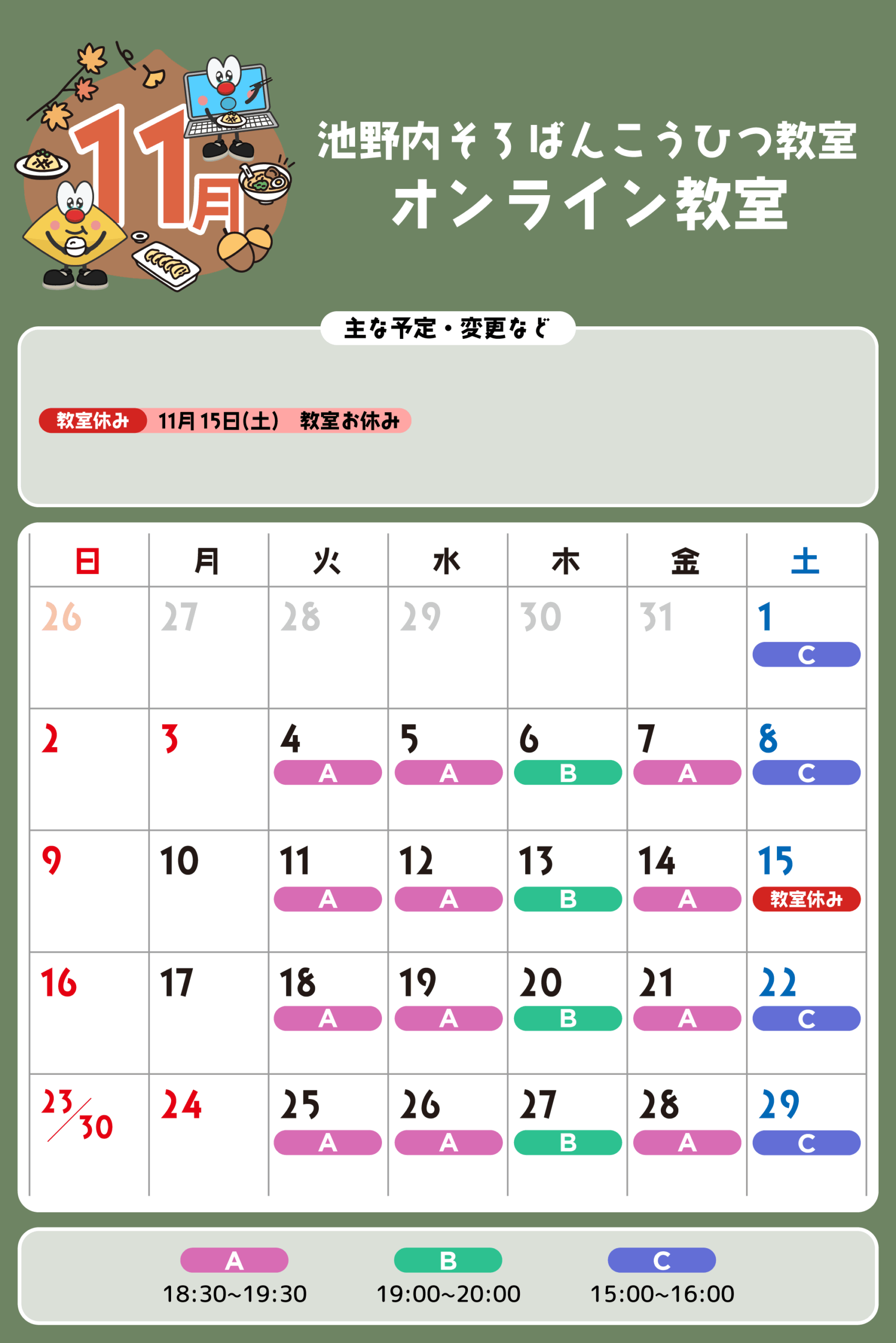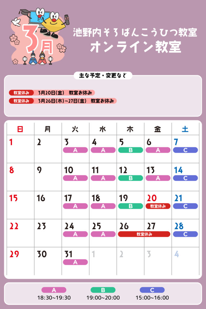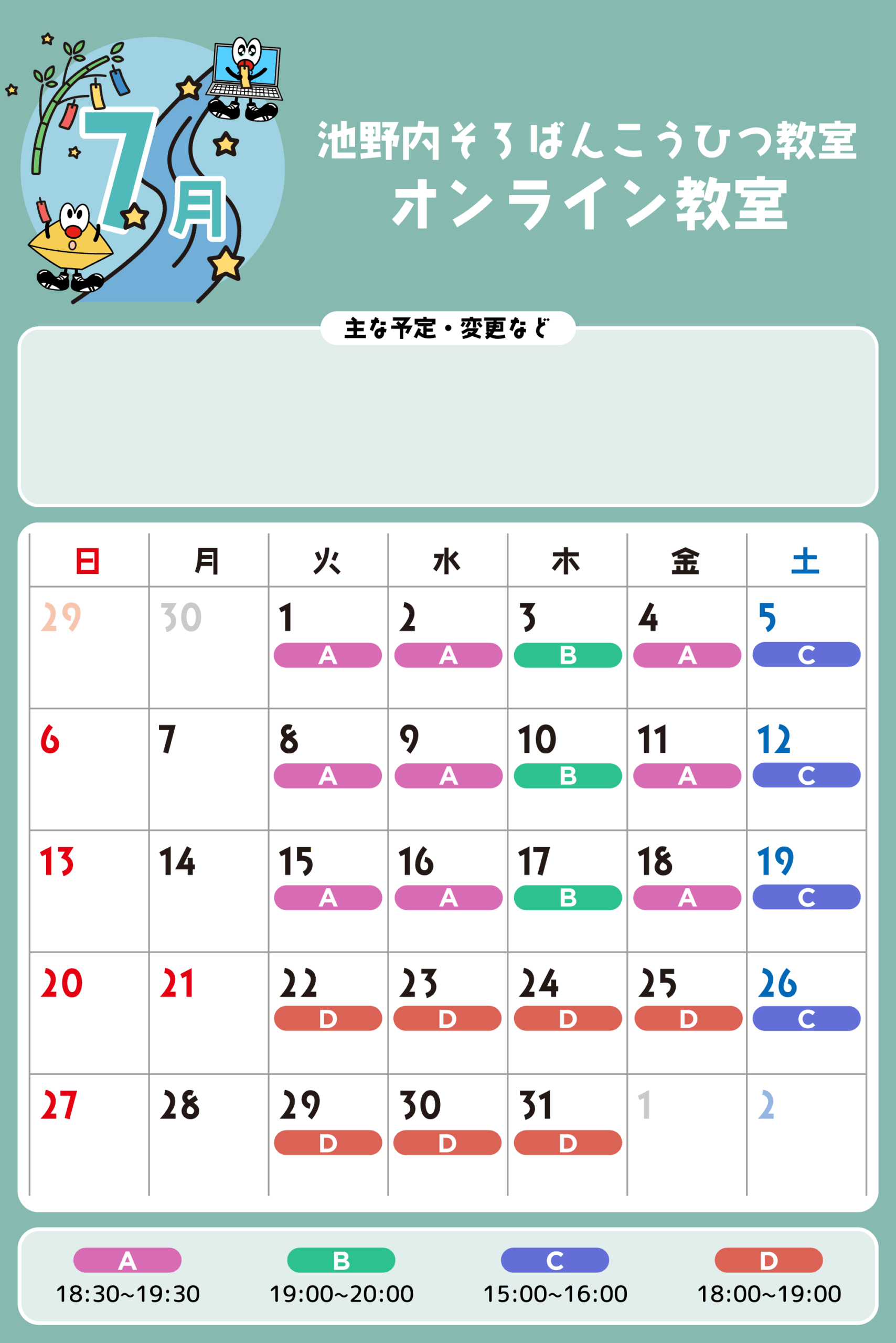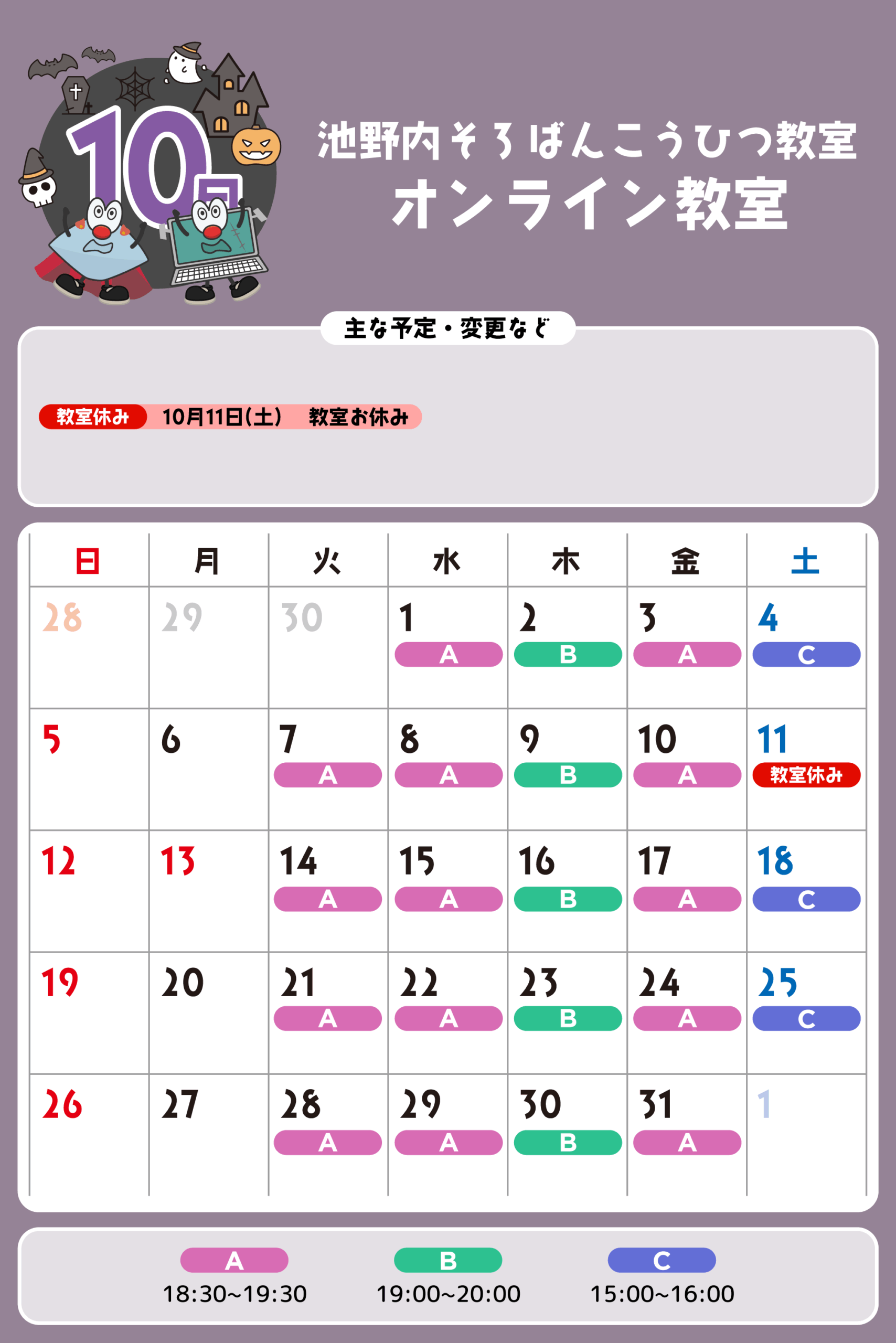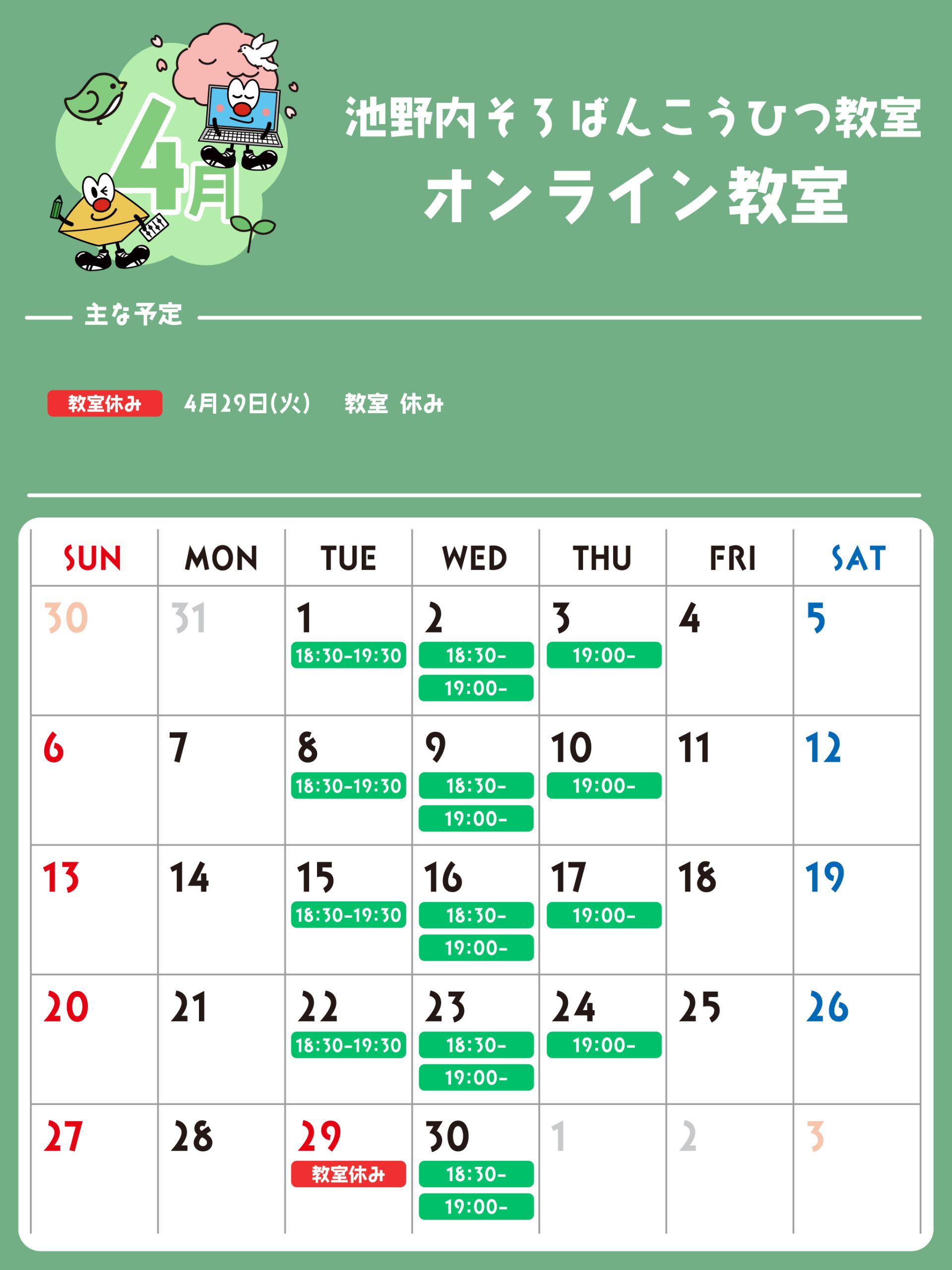 オンライン教室 予定表