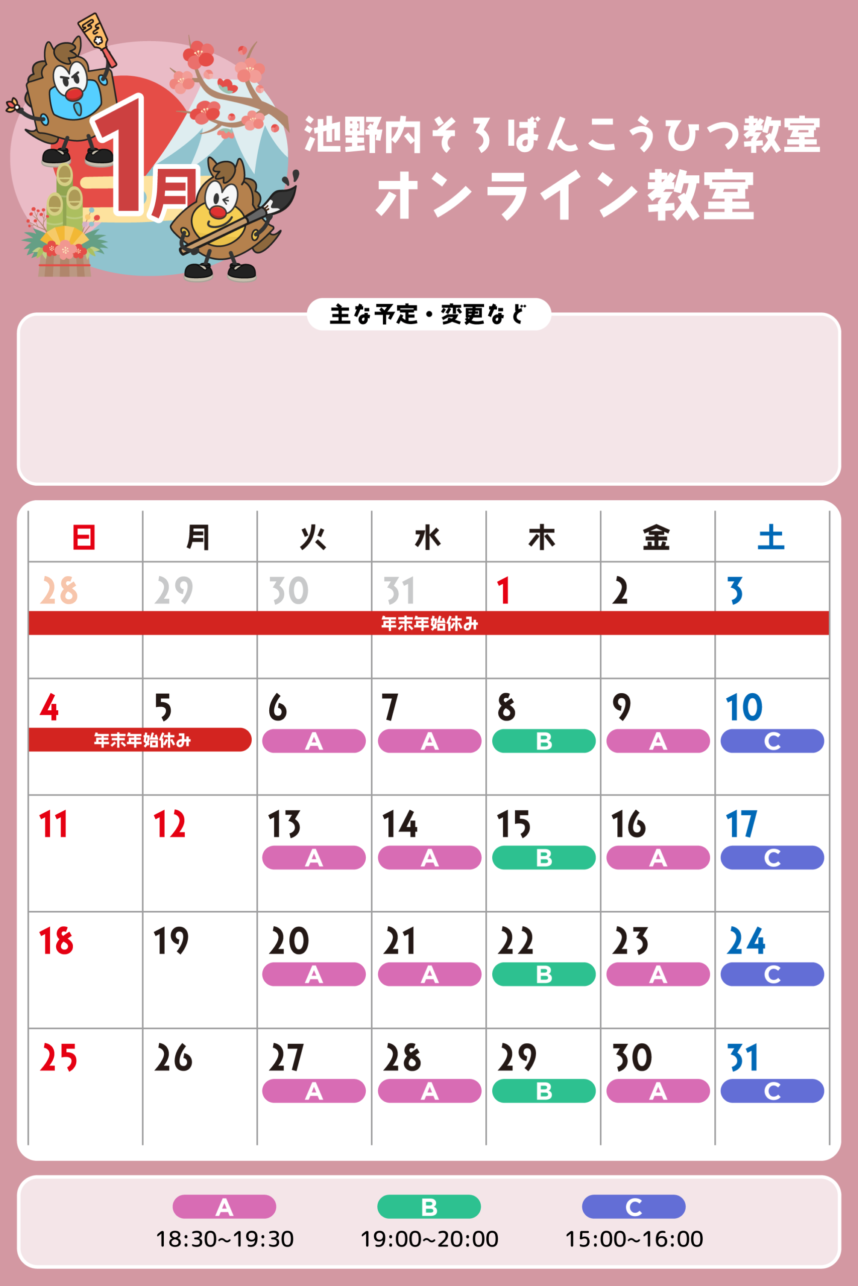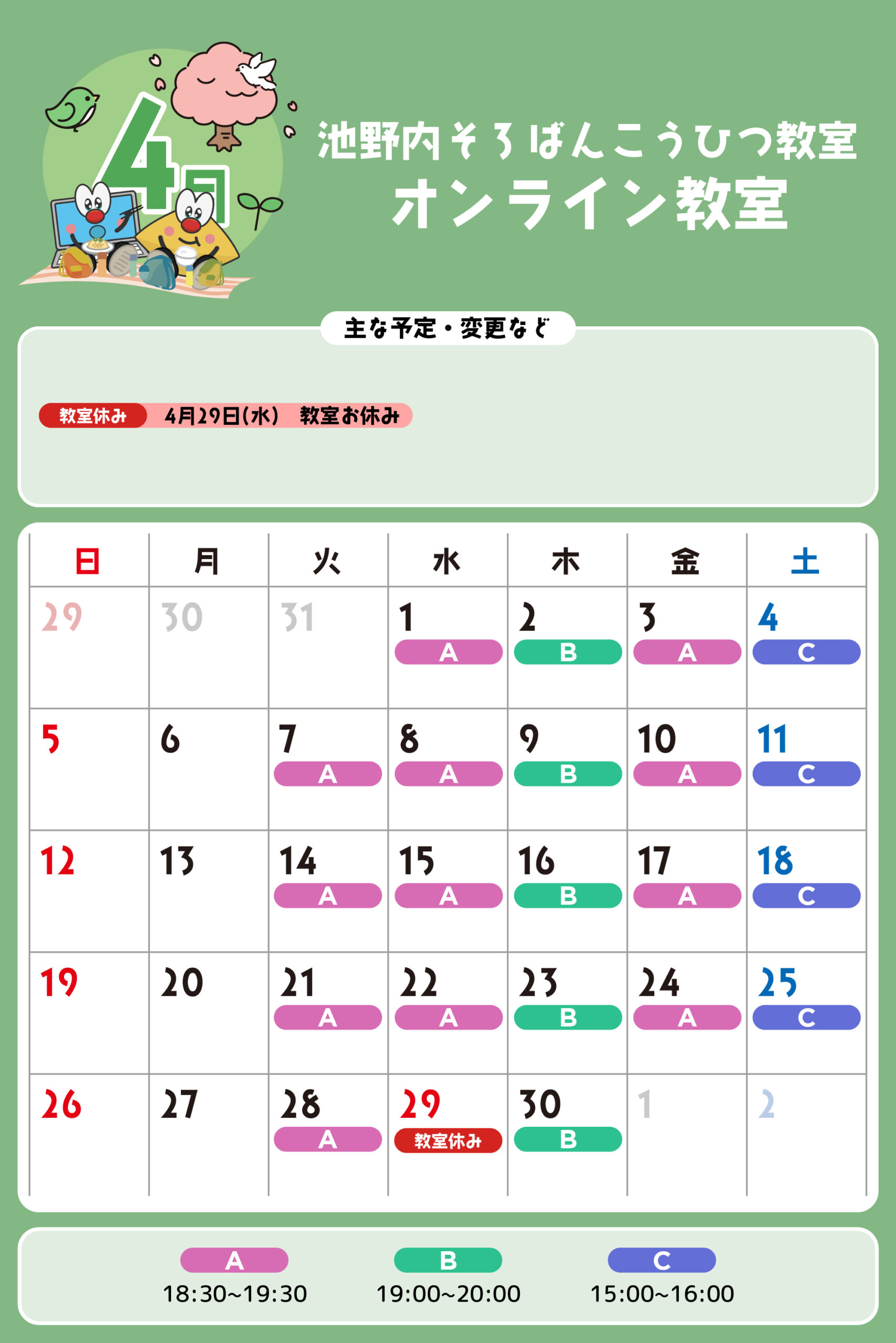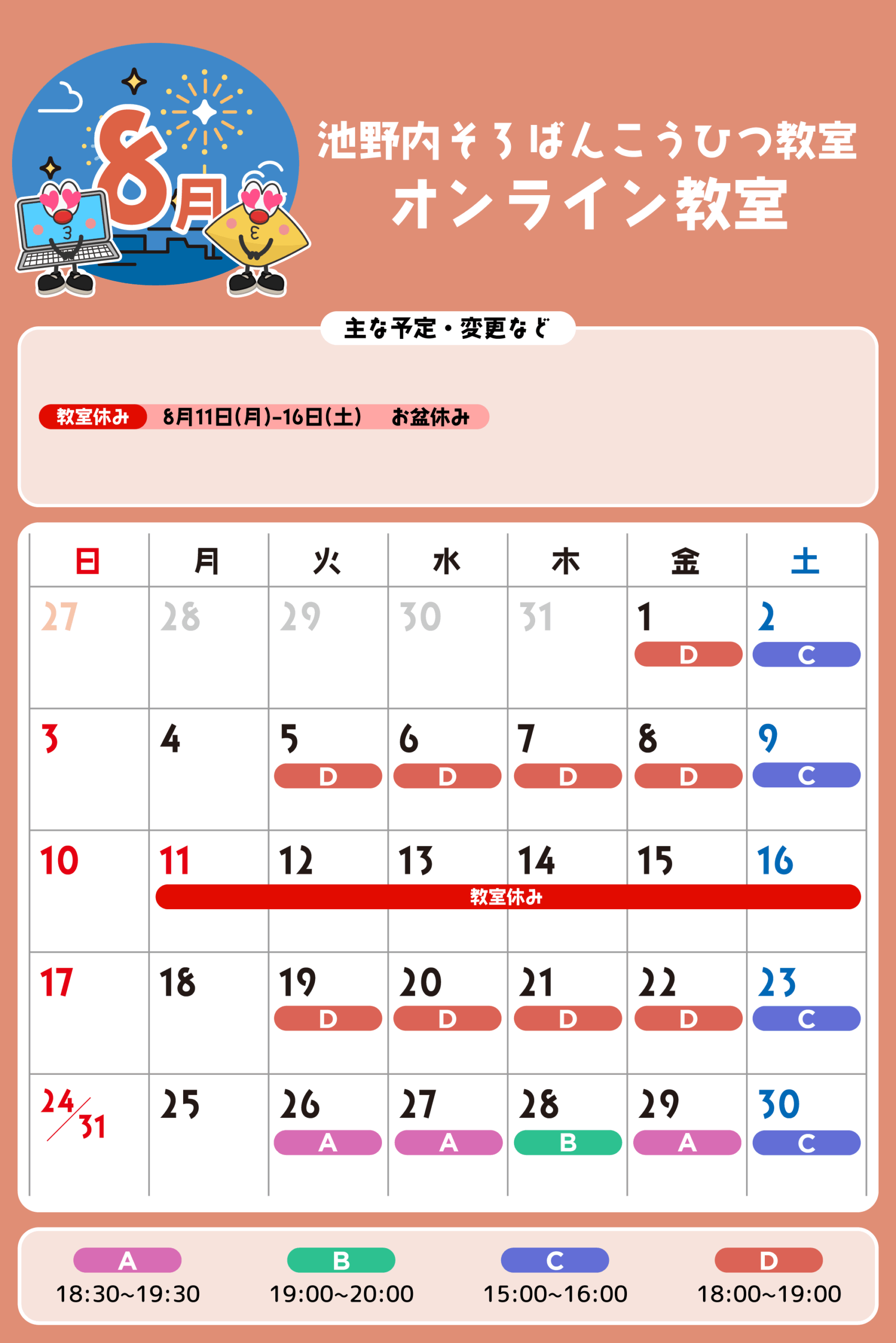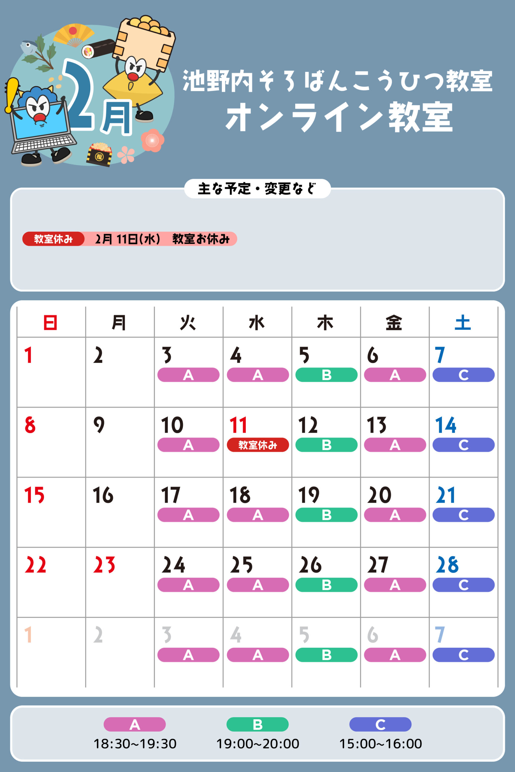 オンライン教室 予定表