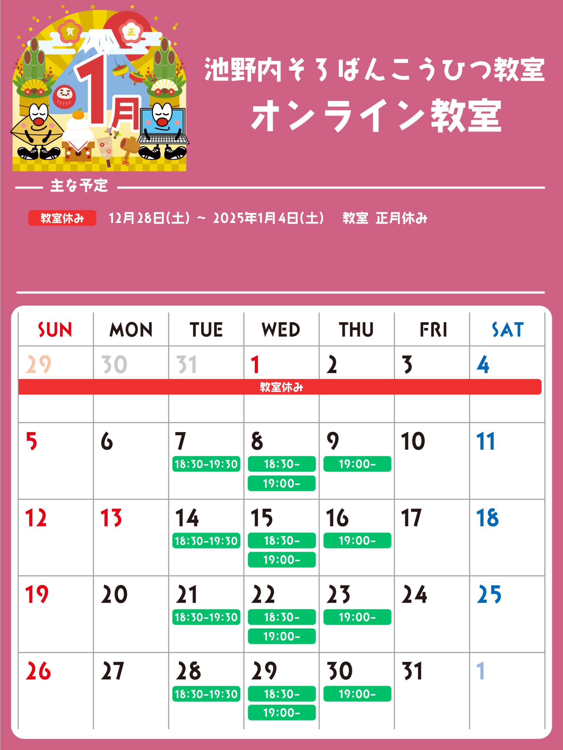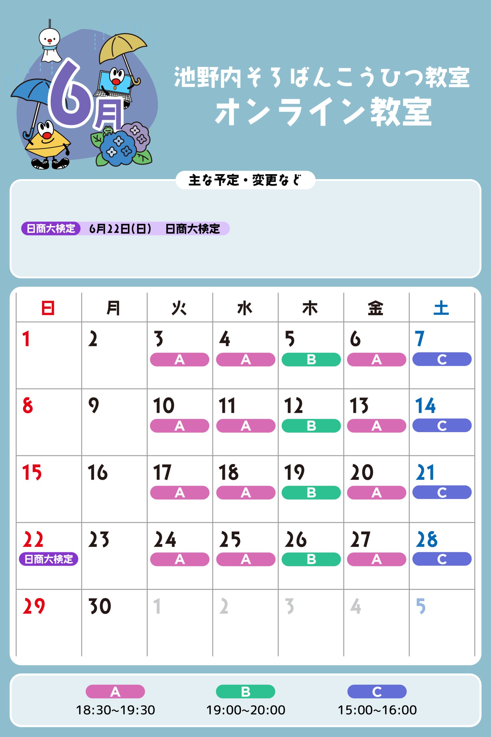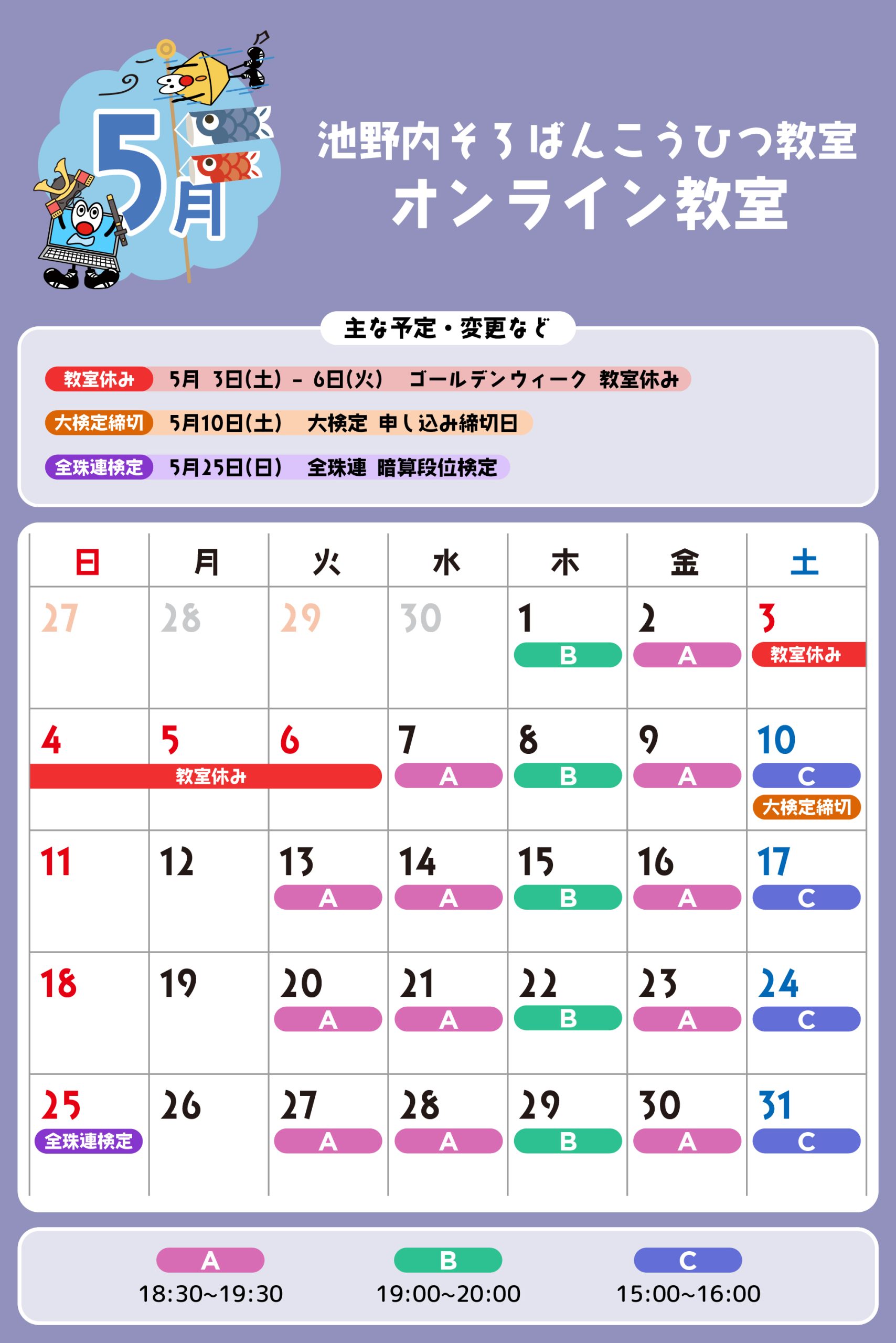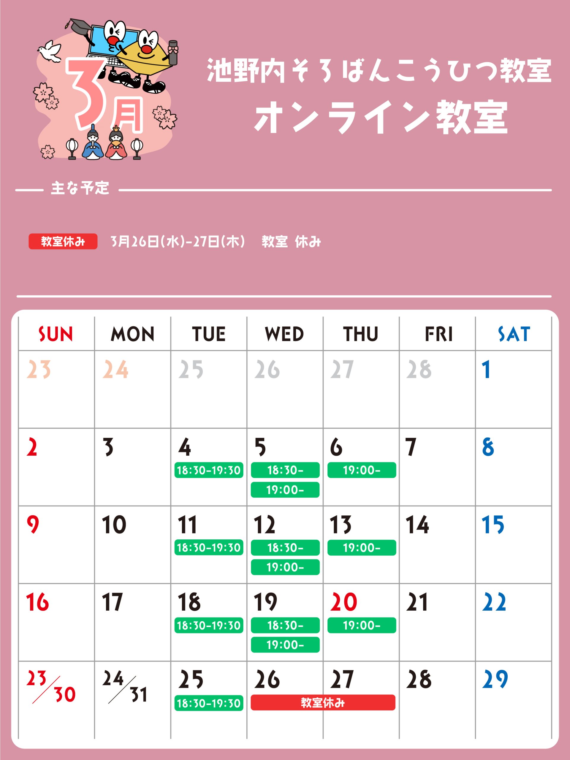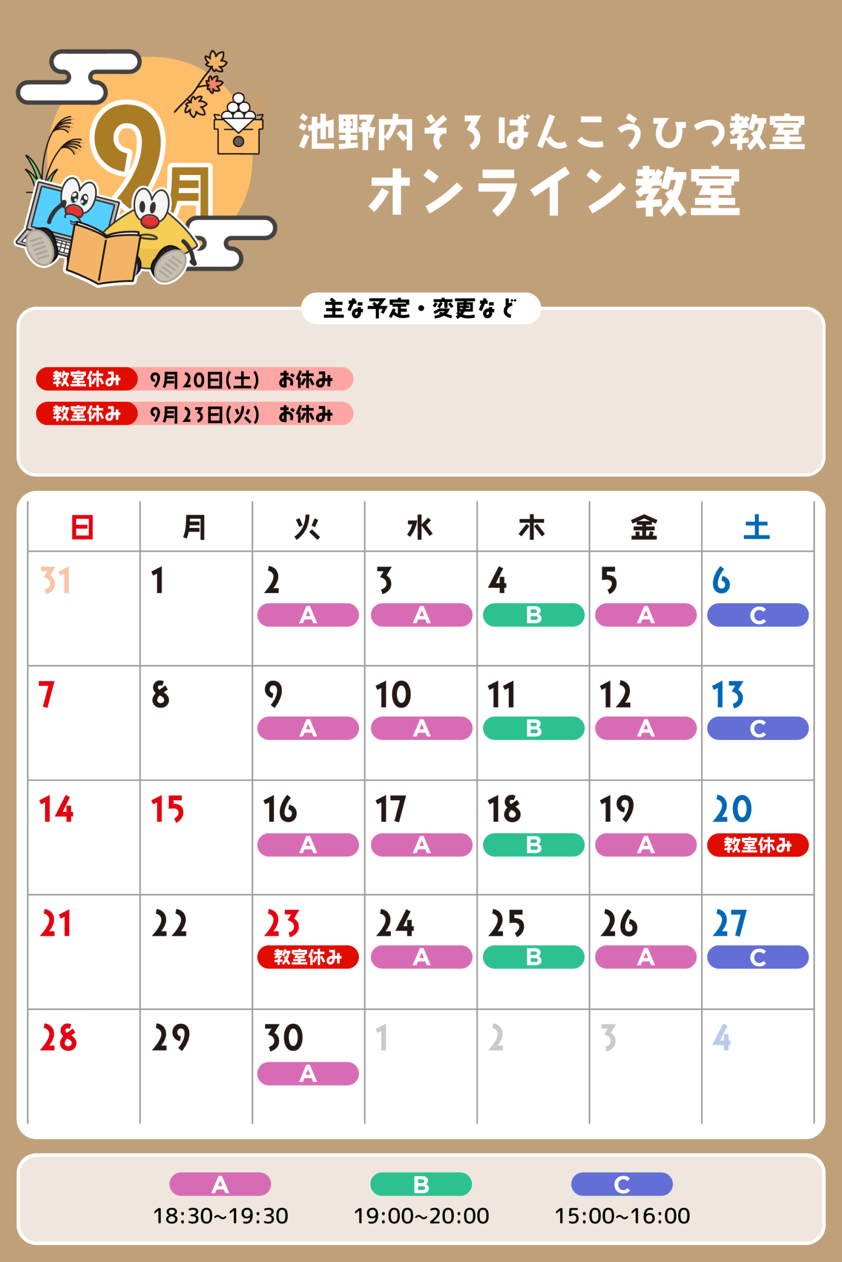 オンライン教室 予定表